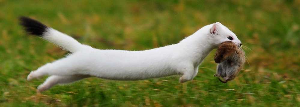 Два этих зверька относятся к семейству куньих, два самых маленьких его представителя. В летнем наряде отличить их друг от друга сложно, оба рыженькие с белой грудкой. Зимой зверьки переодеваются в белый наряд, только у горностая черная кисточка на хвосте, известная всем по королевским мантиям.