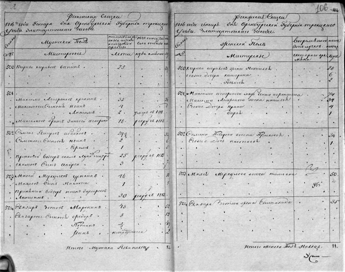 Фамилия Ванин, Крохин, Абабков, Урюкин, Марунин Златоустовский завод 1816 год