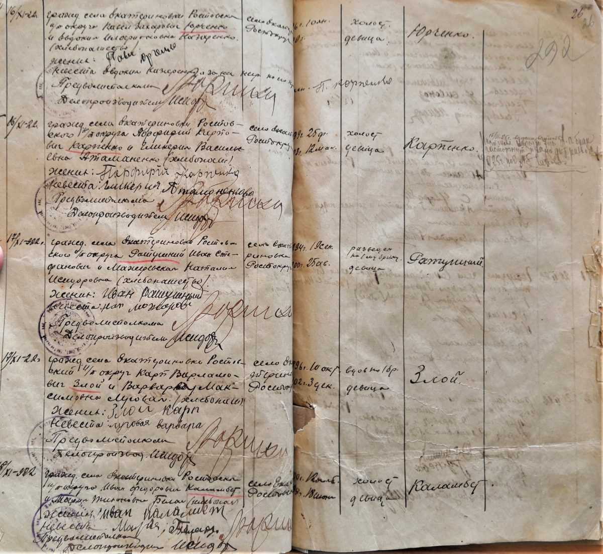 Фамилия Юрченко, Карпенко, Ратушный, Злой, Каламбет село Екатериновка Екатеринославская губерния 1922 год