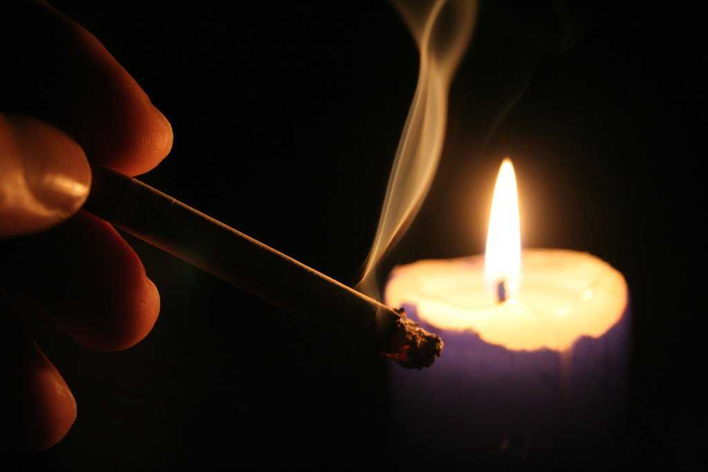 Второй способ потребует небольшой предварительной подготовки. Для того чтобы заговор на сигарету сработал, необходимо взять одну целую сигарету и церковную свечу. Сигарету необходимо полностью распотрошить и высыпать в небольшое блюдце. Далее, от зажжённой свечи следует поджечь табак. Табак в блюдце должен прогореть полностью.